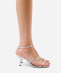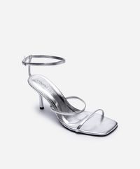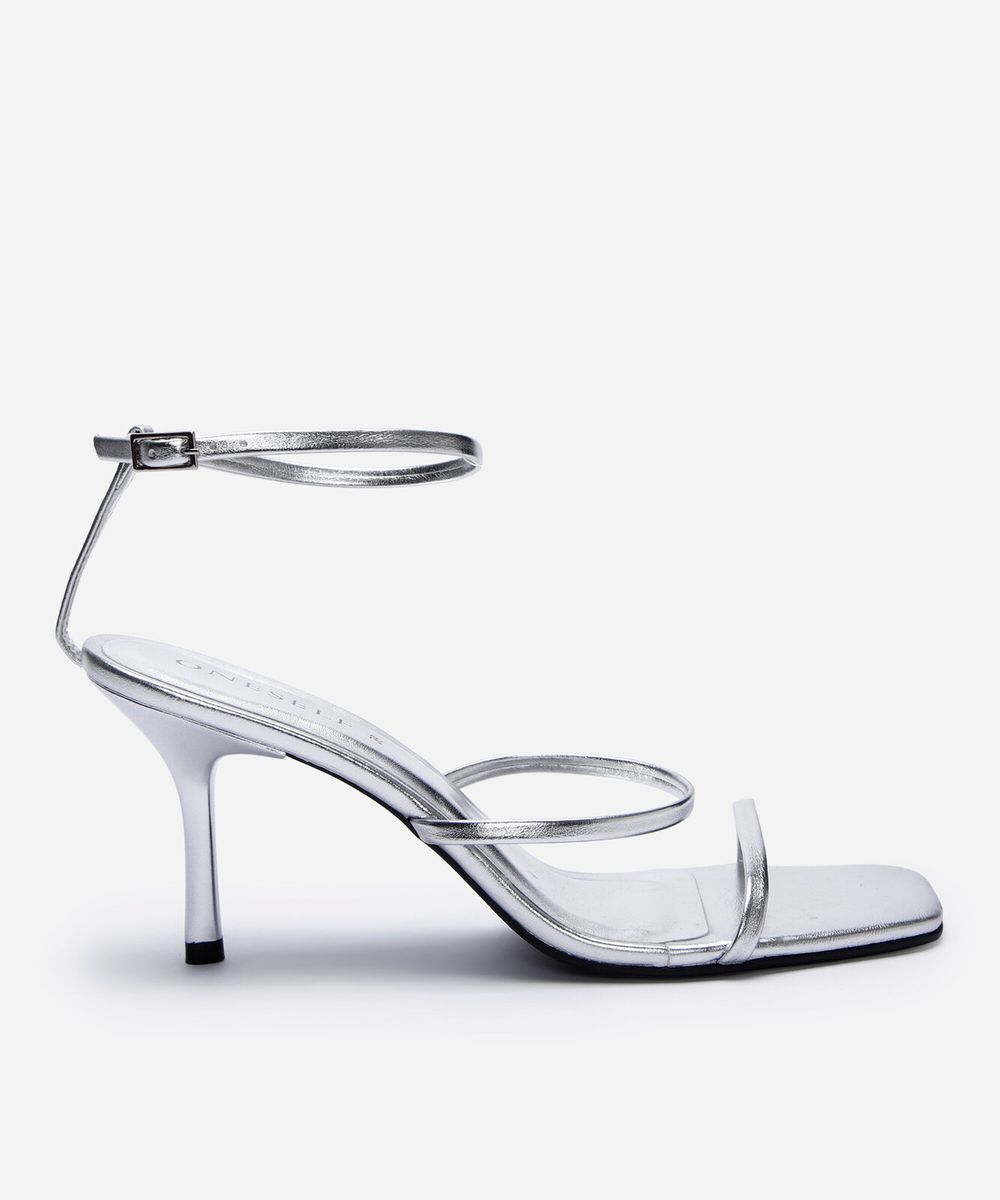 sandália de salto com tiras finas oneself prata
