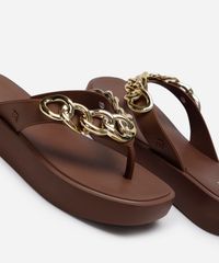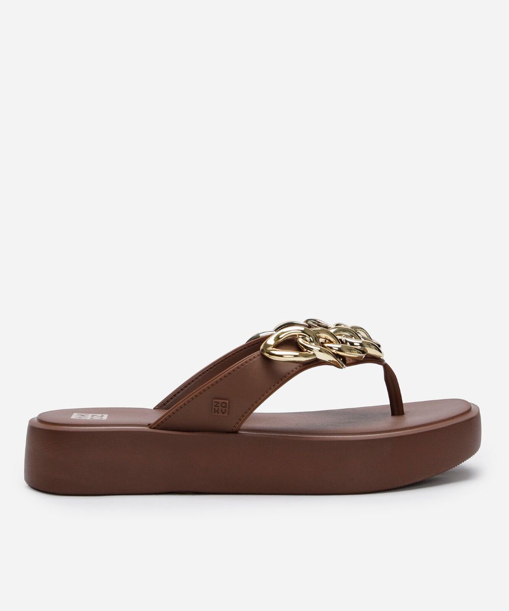 Economia de R$ 50,00Eleve seus looks com um toque de ousadia e conforto. Esta sandália flatform da Zaxy é a peça ideal para quem busca um calçado moderno e versátil. O design de dedo ganha um charme extra com a aplicação de corrente, transformando qualquer produção básica em um visual cheio de personalidade e informação de moda.