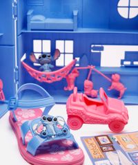 Perfeita para os momentos de lazer, esta sandália do Stitch combina com tudo! Fica ótima com shorts, bermudas, saias e vestidos, criando looks alegres e descontraídos para a escola, passeios no parque ou festinhas. A diversão é garantida, tanto nos pés quanto na hora de brincar com o Pet Shop que acompanha o calçado.