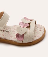 • Cabedal com aplicação de corações, sendo alguns com efeito metalizado, que adicionam um toque de brilho.