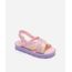 Sandália infantil desenvolvida em material sintético resistente. O modelo tem bico redondo, cabedal com tiras cruzadas e fechamento lateral por velcro. Possui solado macio com inscrição marca e sola texturizada que auxilia no caminhar.