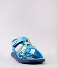 Sandália infantil masculina desenvolvida em material emborrachado maleável. O modelo tem estampa com o youtuber Lucas Neto no solado e nas tiras do cabedal. O fechamento é lateral por velcro. O solado é flexível.