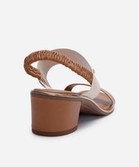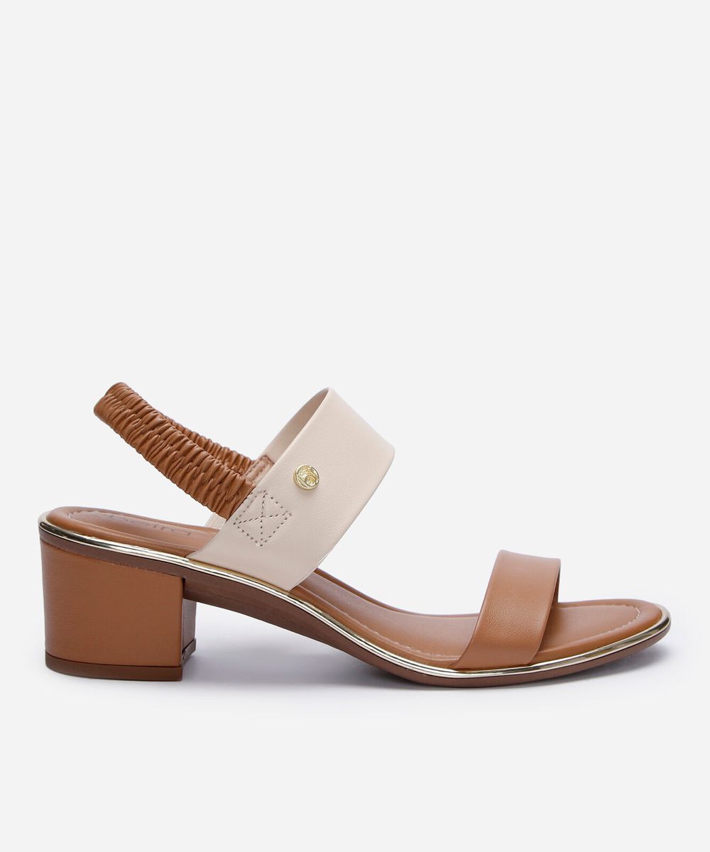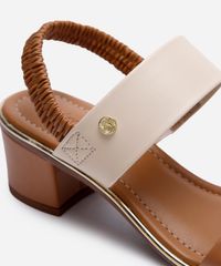 Sandália feminina desenvolvida em material sintético resistente. O modelo tem bico arredondado e cabedal com tiras duplas largas e tira elástica posterior que facilita na hora de calças. Possui sola com inscrição de marca, detalhe metalizado lateral, salto grosso baixo e sola texturizada.