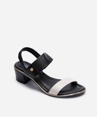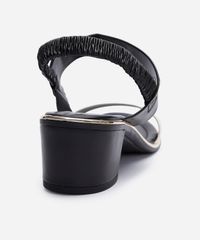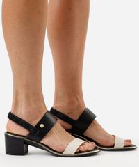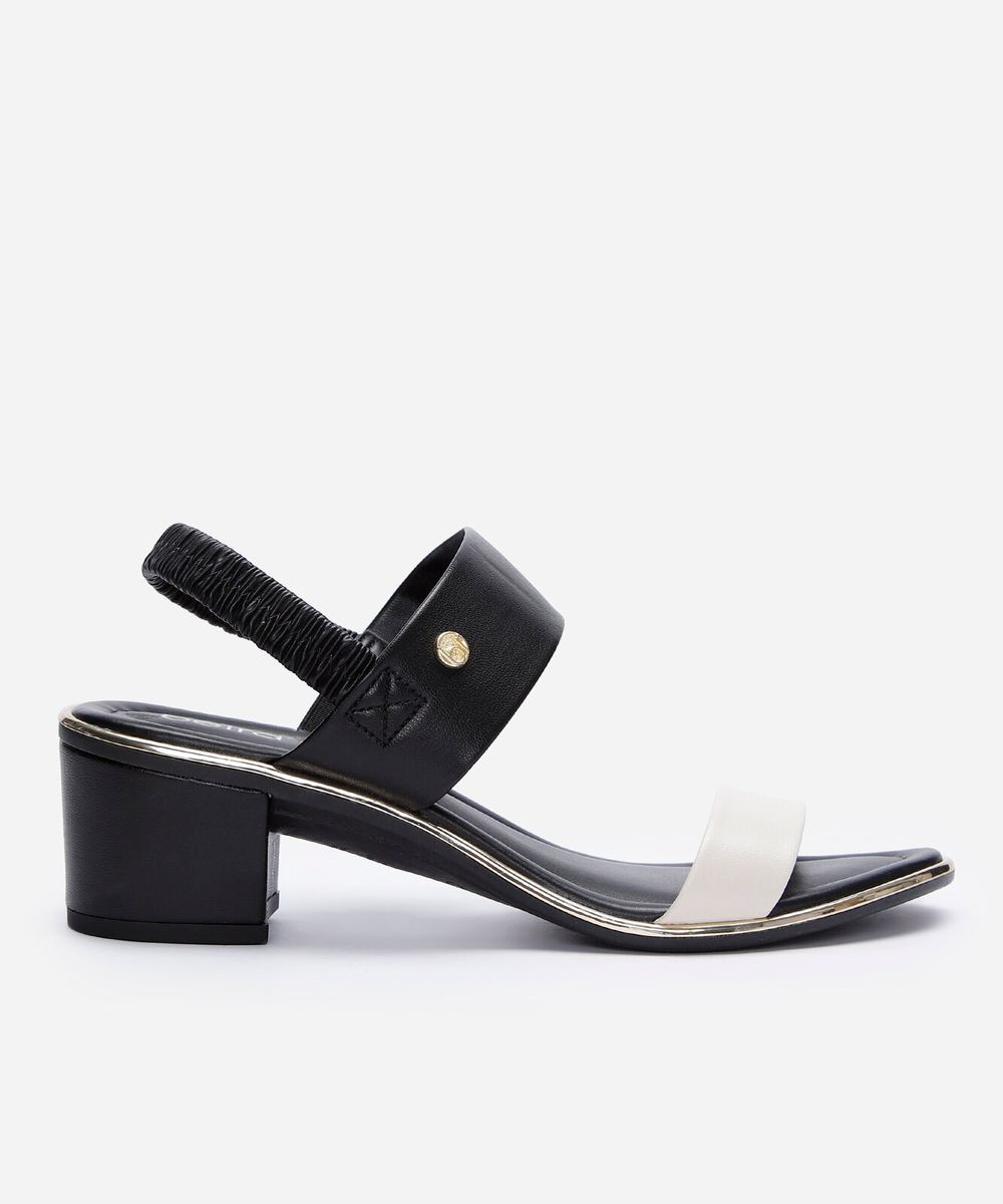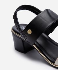 Sandália feminina desenvolvida em material sintético resistente. O modelo tem bico arredondado e cabedal com tiras duplas largas e tira elástica posterior que facilita na hora de calças. Possui sola com inscrição de marca, detalhe metalizado lateral, salto grosso baixo e sola texturizada.