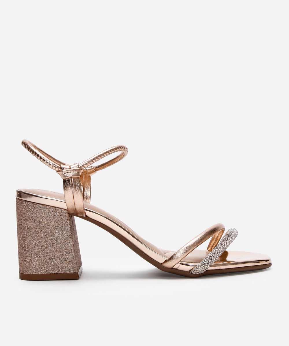 sandália salto grosso com brilhos beira rio rosa