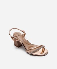 • Cabedal com tiras finas, sendo uma delas com aplicação de strass para um toque de brilho.