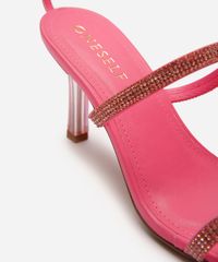 sandália tira com strass salto fino rosa