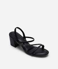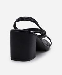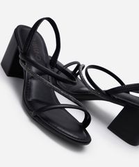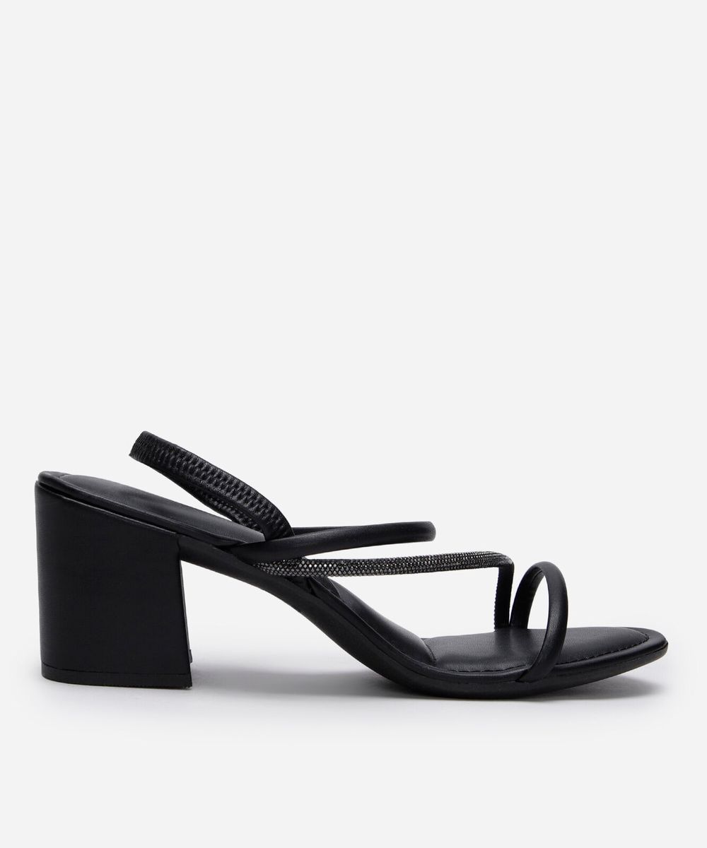 sandália tiras finas salto grosso com brilhos via uno preta