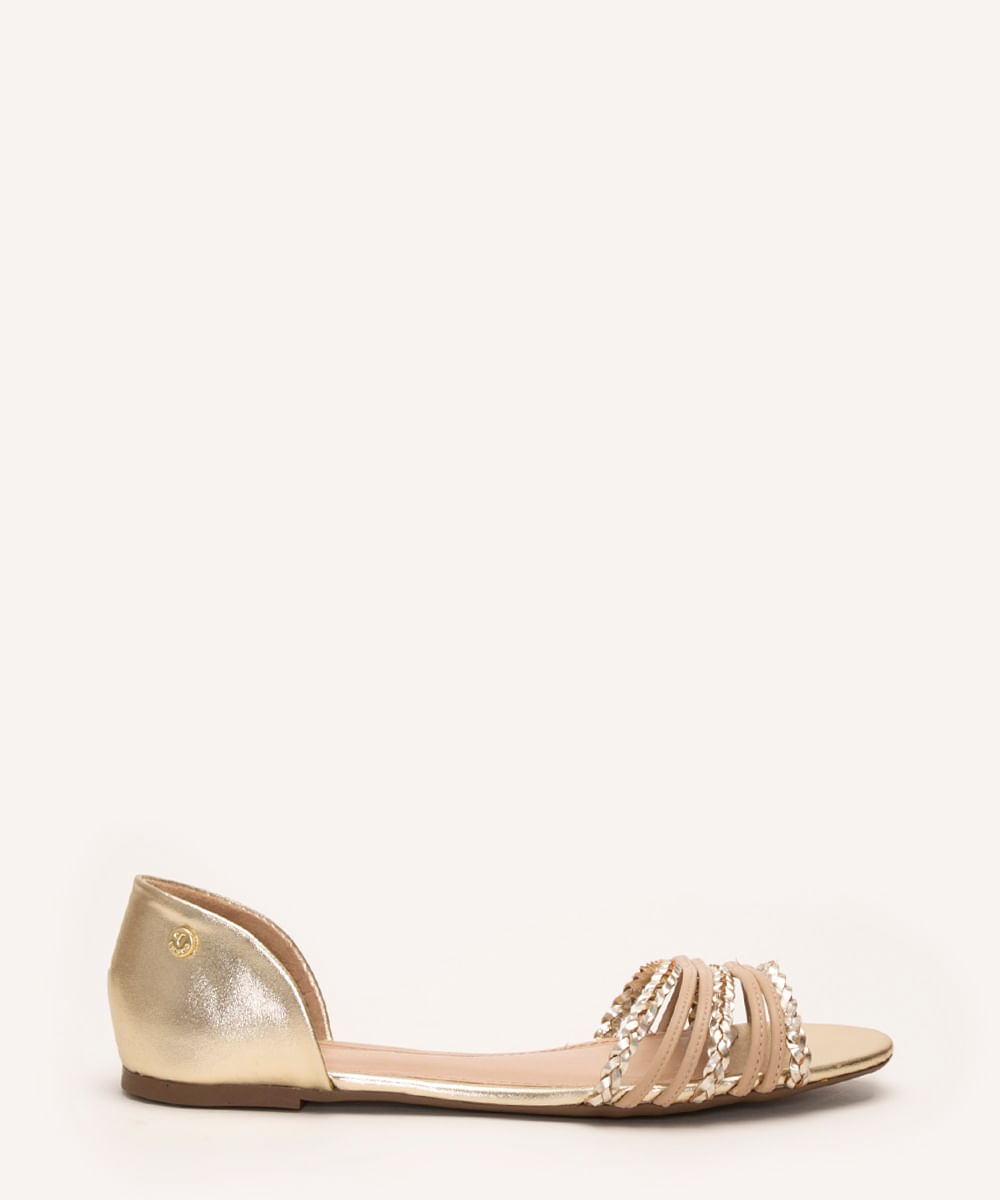 Esta sapatilha é a escolha ideal para quem busca unir a elegância de um sapato delicado com o conforto essencial para o dia a dia. Seu design aberto nas laterais traz um toque de modernidade e frescor, enquanto as tiras trançadas no cabedal adicionam uma textura rica e sofisticada. É um calçado feminino versátil que transita facilmente entre o casual e o formal.