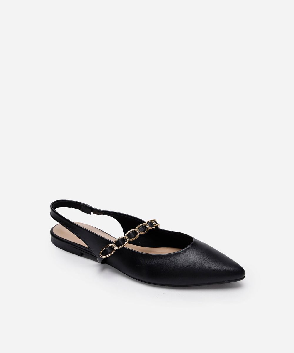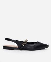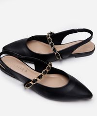 Sapatilha feminina desenvolvida em material sintético resistente. O modelo tem bico fino, cabedal com tira elástica posterior para melhor fixação nos pés e corrente aplicada. Possui solado com leve enchimento e inscrição de marca e sola texturizada que auxilia no caminhar.