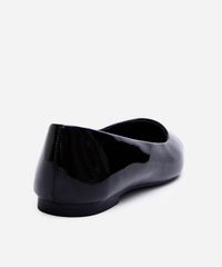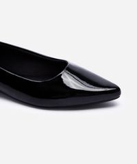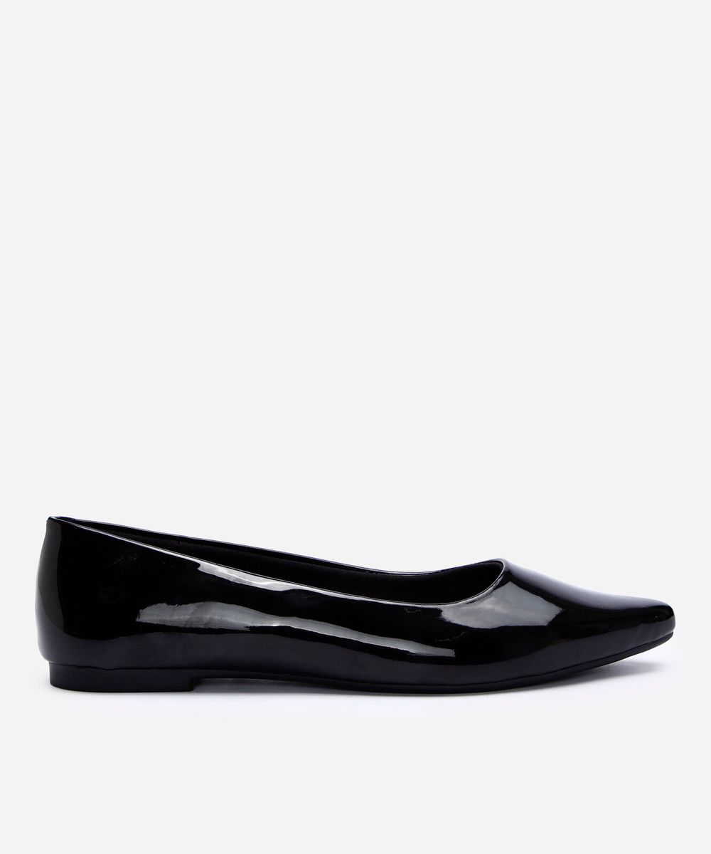 Sapatilha feminina desenvolvida em material sintético com efeito envernizado. O modelo tem bico fino e cabedal liso. Possui palmilha macia com inscrição de marca e sola texturizada.