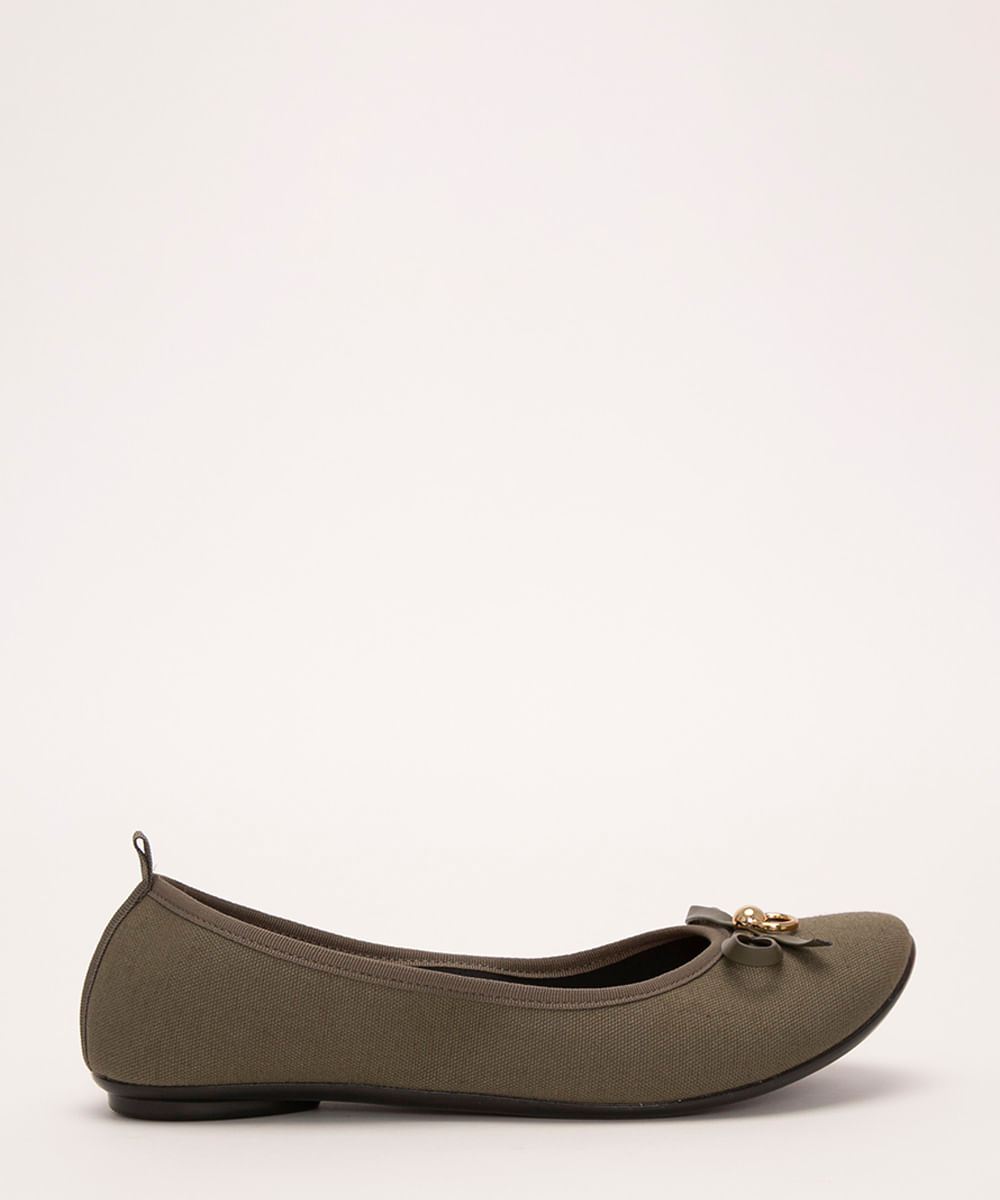 Sapatilha desenvolvida em lona. O modelo tem bico arredondado, aplicação de laço em material sintético na parte superior do cabedal, além de aplicação de aviamento metálico. Puxador aplicado na parte posterior e solado emborrachado com textura que auxilia no caminhar.