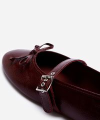 Sapatilha boneca feminina desenvolvida em material sintético texturizado. O modelo tem bico remondo e cabedal com acabamento em viés, tira com fivela ajustável e laço decorativo aplicado. Possui palmilha macia com inscrição de marca e sola texturizada.