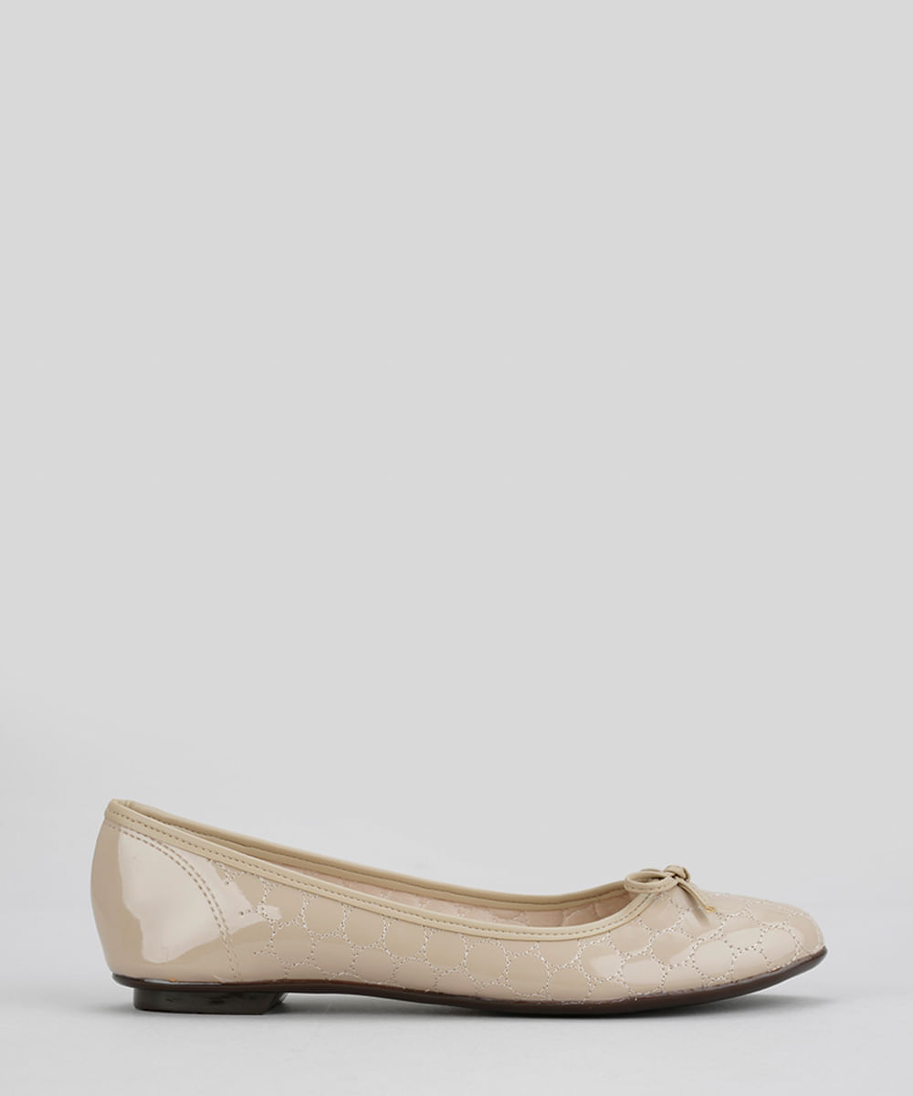 Sapatilha confeccionada em material resistente com aspecto envernizado. O modelo tem detalhe de laço aplicado na parte frontal. A palmilha é almofada e o solado emborrachado.