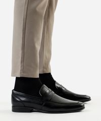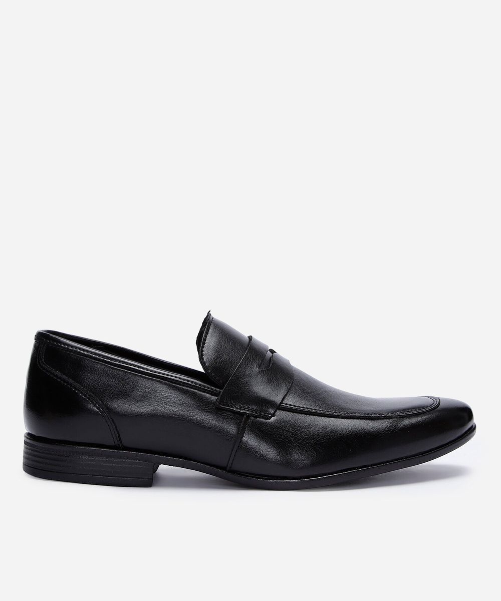Sapato social masculino desenvolvido em material sintético resistente. O modelo tem bico redondo e cano curto, cabedal com tira com recorte vazado e acabamento pespontado. Possui palmilha macia com inscrição de marca e sola texturizada que auxilia no caminhar.