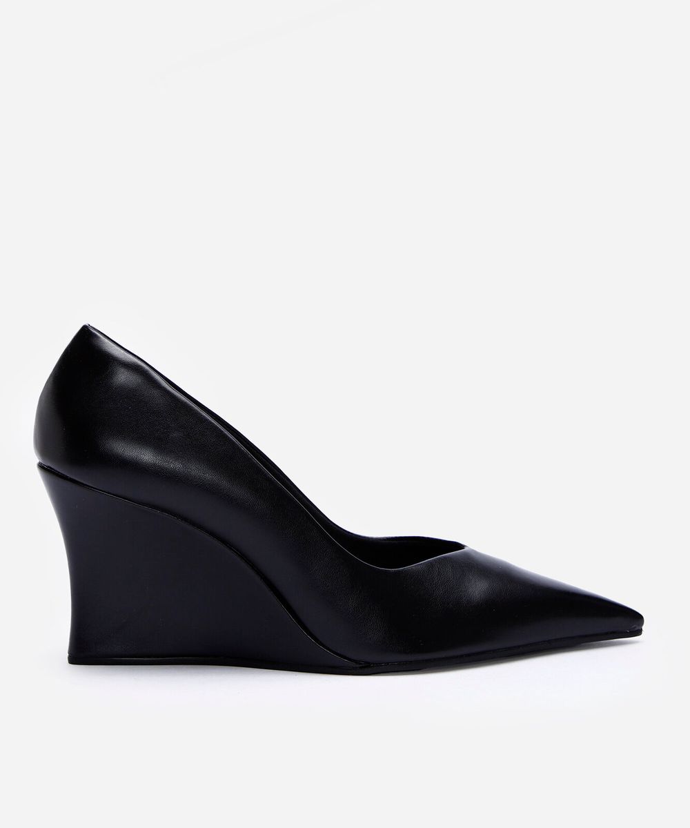 scarpin bico fino anabela preta