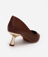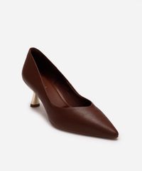 Scarpin feminino confeccionado em material sintético resistente. O modelo tem bico fino e cabedal liso, possui palmilha macia com inscrição de marca e salto médio fino com efeito cromado. A sola é texturizada e auxilia no caminhar.