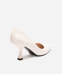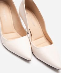 • Cabedal com recorte arredondado, um detalhe sutil que moderniza o design tradicional do scarpin.