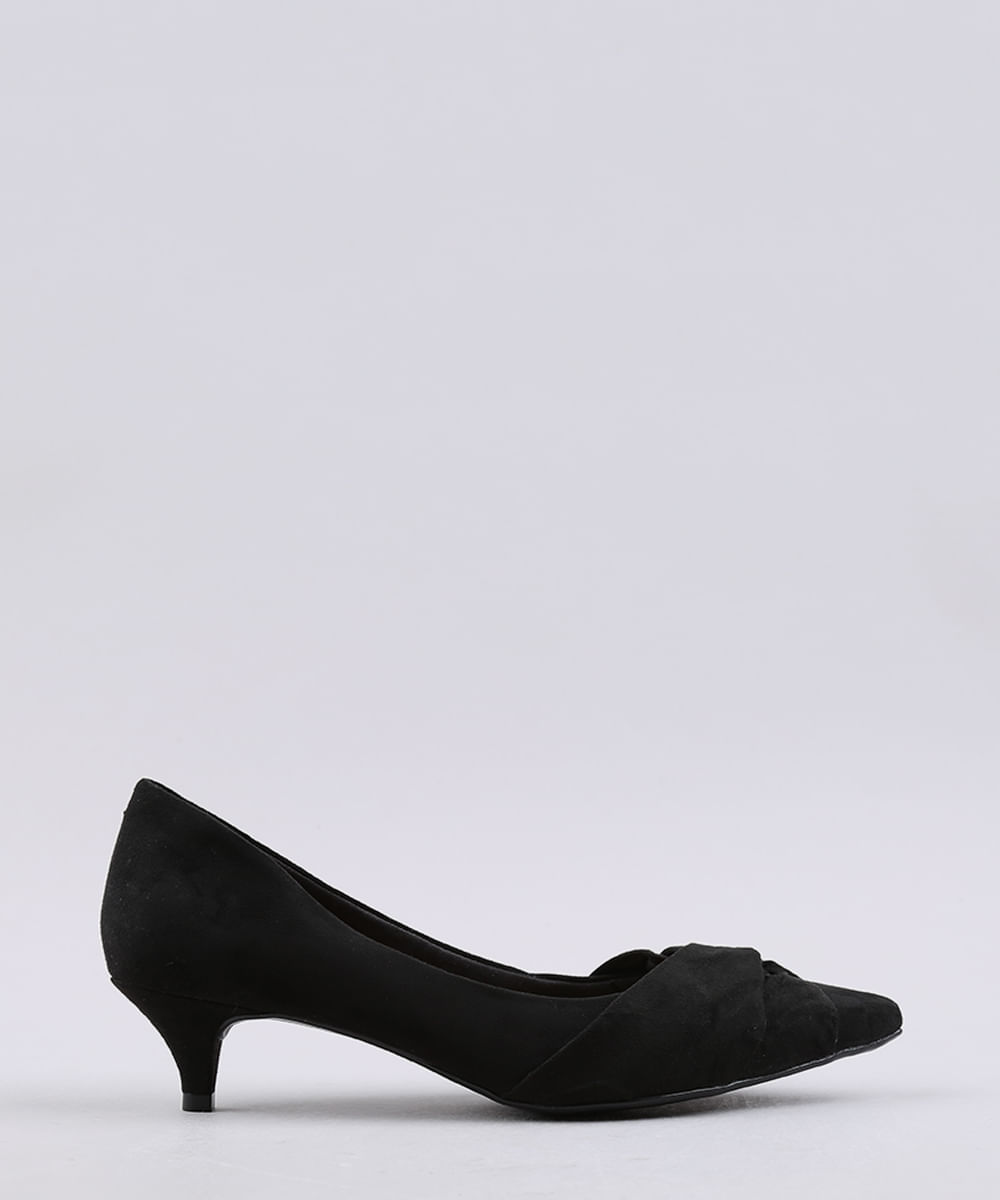 Scarpin feminino desenvolvido em material com toque acamurçado. O modelo tem bico fino e detalhe de transpasse. O solado é emborrachado e o interior é macio.