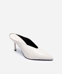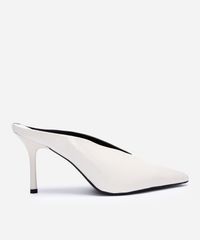 Scarpin feminino produzido em material sintético texturizado. A peça possui modelo mule, bico fino, cabedal com recorte em V, salto alto modelo agulha, palmilha acolchoada e solado macio para garantir mais conforto ao caminhar.