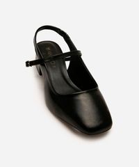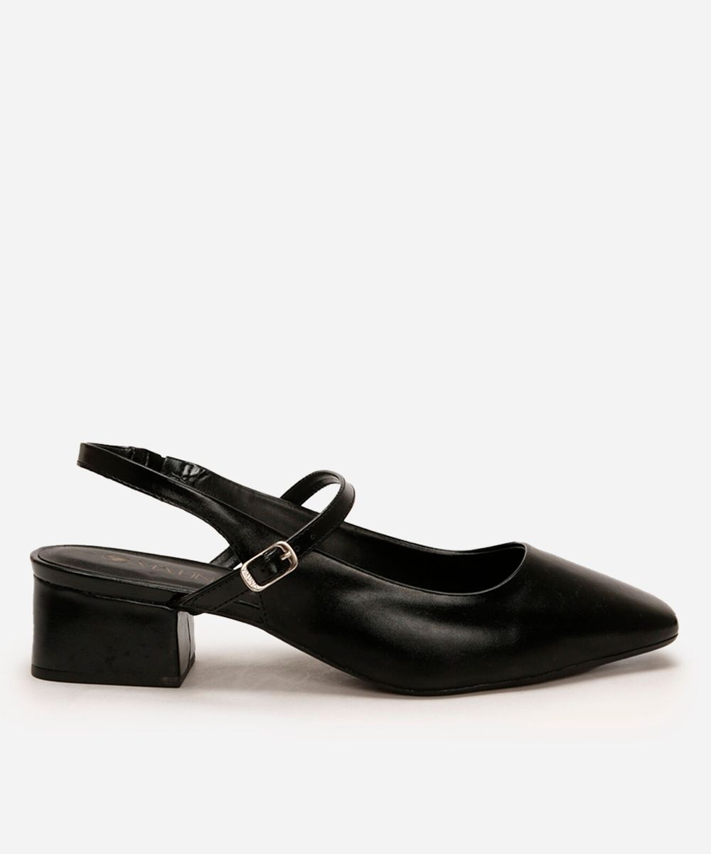 • Design que une o estilo Mary Jane, com tira no peito do pé, e o slingback, com calcanhar aberto e tira de ajuste com fivela.