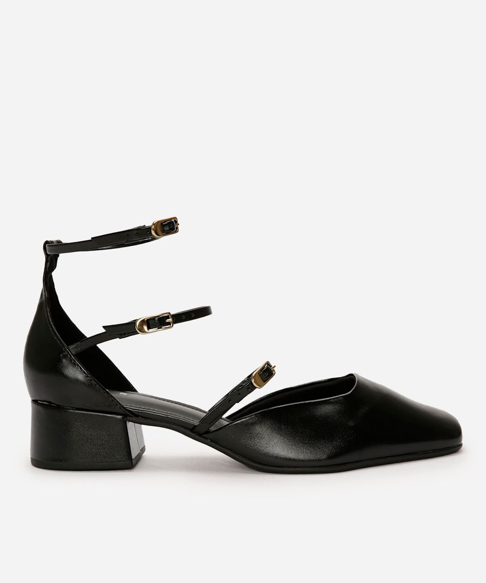 • Modelagem com bico quadrado e salto baixo em bloco, unindo conforto e tendência.