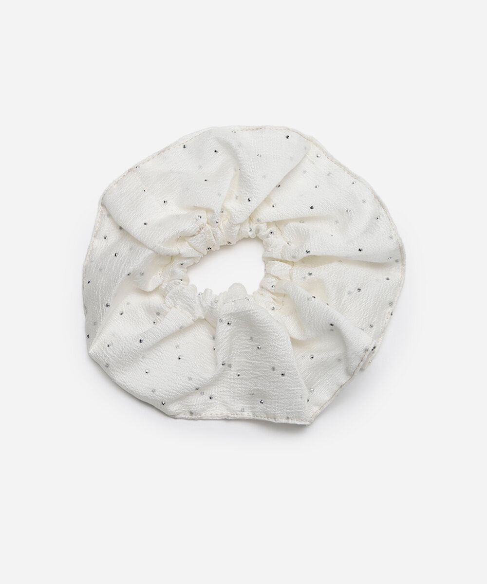 scrunchie texturizada com brilhos off white - UNICO