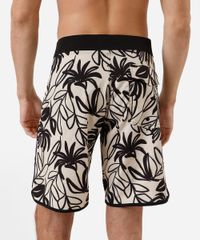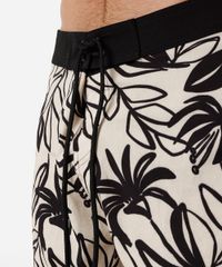 Short boardshort masculino confeccionada em tecido plano leve com estampa floral. A peça tem modelagem reta e caimento solto ao corpo. O modelo tem cintura média, cós com cordão para ajuste e fechamento por velcro. Possui dois bolsos frontais e um aplicado na parte posterior. Detalhe de acabamento pespontado nas barras.
