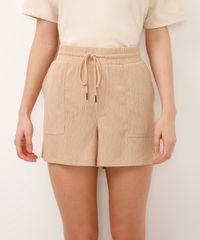 short curto cós com cordão texturizado bege