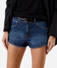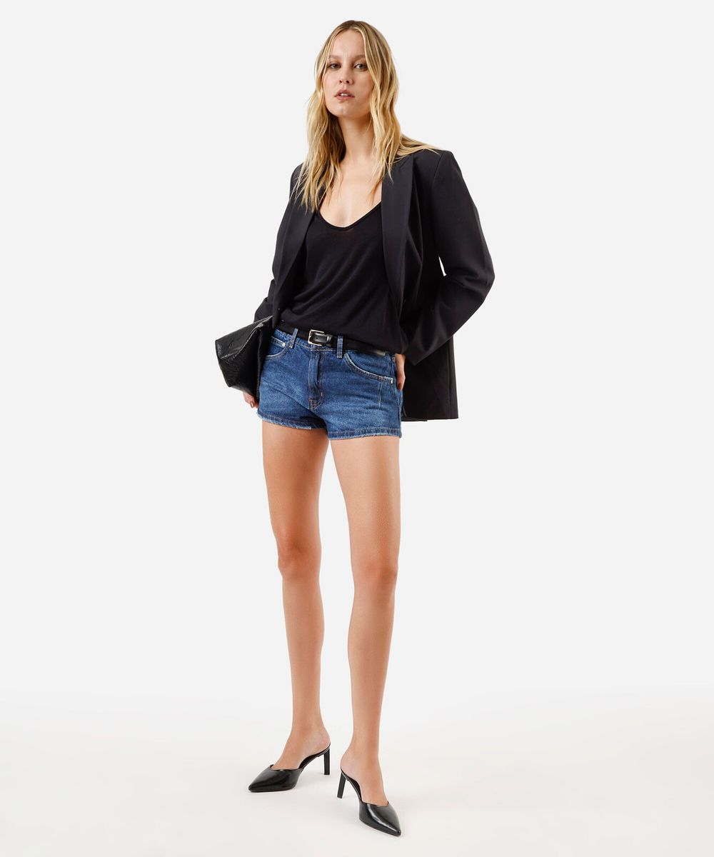 short curto feminino jeans cintura média azul
