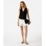 Short de alfaiataria feminino confeccionado em tecido estruturado com viscose e elastano. A peça tem modelagem reta e caimento levemente solto ao corpo. O modelo tem cintura alta, cós liso com pences no contorno e fechamento por zíper e colchete. Possui dois bolsos decorativos na parte posterior e acabamento pespontado nas barras.