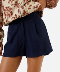 short de alfaiataria feminino com viscose cós elástico azul