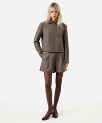 short de alfaiataria feminino texturizado marrom