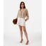 Short feminino confeccionado em sarja estruturada com bordado de arabescos vazados na parte frontal. A peça tem modelagem reta e caimento solto ao corpo. O modelo tem cintura alta, cós liso e fechamento por zíper. Possui dois bolsos frontais e dois aplicados na parte posterior.