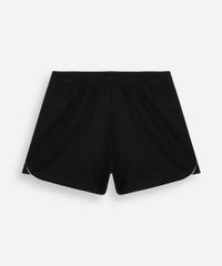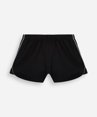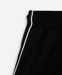 Short esportivo confeccionado em moletom sem felpa interna e toque macio. A peça juvenil possui modelagem reta com caimento levemente solto ao corpo, comprimento curto, cintura alta, cós com elástico embutido, detalhe assimétrico nas laterais e de nervuras em cor contrastante, acabamento pespontado.