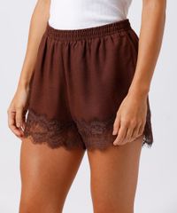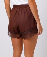 short feminino com linho e renda mindset marrom
