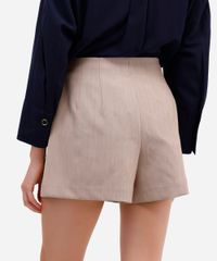 short feminino de alfaiataria com pences bege