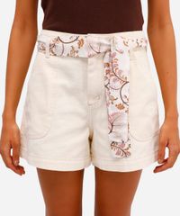 Este short jeans feminino é extremamente versátil. Para um look casual, combine-o com uma camiseta básica e tênis. Se a ideia é uma produção mais elaborada, aposte em uma blusa cropped, sandálias de salto bloco ou botas. A faixa estampada pode ser usada na cintura para um visual mais acinturado ou até mesmo substituída por um cinto de sua preferência.