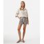 Short feminino confeccionada em sarja estruturada com estampa listrada. A peça tem modelagem reta e caimento levemente solto ao corpo. O modelo tem cintura alta, cós com passantes para cinto e fechamento por zíper e botão. Possui três bolsos frontais e dois aplicados na parte posterior. Detalhe de acabamento pespontado nas barras.
