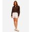 Este short feminino se destaca por seus detalhes que unem estilo e praticidade: