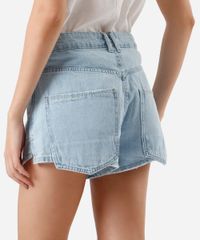 Short feminino confeccionada em jeans estruturado. A peça tem modelagem reta e caimento levemente solto ao corpo. O modelo tem cintura média, cós com passantes para cinto e fechamento por zíper e botão. Possui três bolsos frontais e dois bolsos deslocados aplicados na parte posterior. Detalhe de acabamento pespontado nas barras. Peça versátil que vem com lenço para compor seus looks.