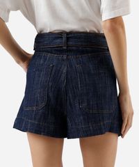 short feminino jeans com cinto cintura alta azul