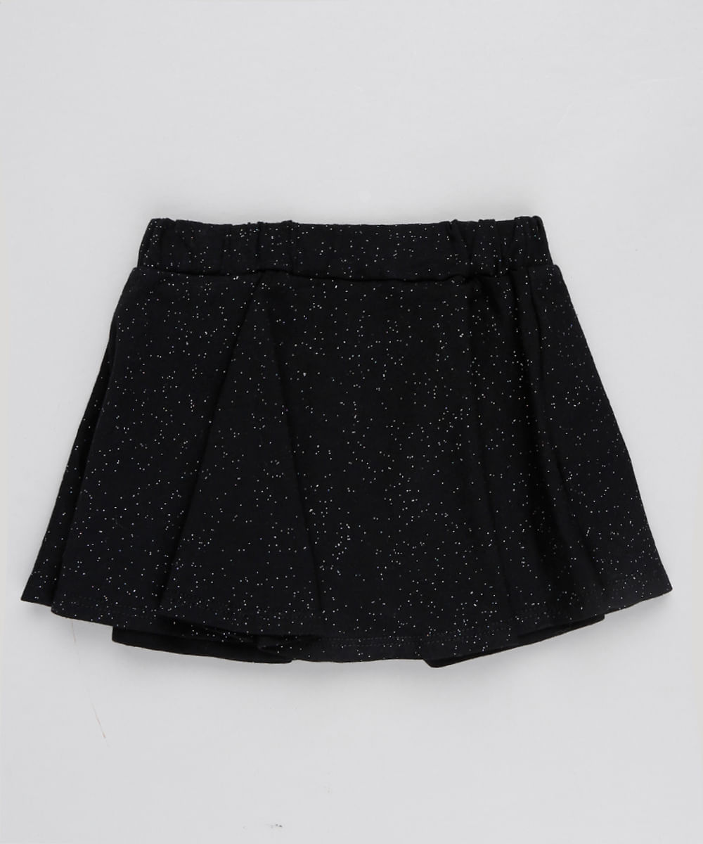 Short infantil feminino desenvolvido em malha com brilho. A parte frontal possui aplicação de laço no cós. O cós aplicado tem elástico embutidos para melhor ajuste da peça. O forro com modelagem de short foi desenvolvido em malha com elasticidade e tem caimento ajustado ao corpo. A barra tem acabamento simples.