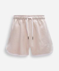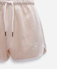 Short confeccionado em moletinho de algodão. Possui modelagem reta, caimento solto, comprimento curto, detalhes com viés em cor contrastante, cintura média, cós com elástico embutido, cordão para ajuste e amarração com ponteiras metalizadas, detalhe com estampa "Los Angeles" e fendas laterais sutis.