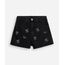 Este shorts jeans preto infantil foi pensado para unir conforto e um toque divertido. Seus detalhes incluem: