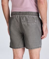 Bermuda masculina confeccionada em tecido com efeito estonado e toque leve. A peça possui modelagem jogger com caimento reto e levemente solto, cintura média, cós com elástico embutido e cordão para ajuste, dois bolsos frontais estilo faca e um bolso posterior estilo chino, detalhe de recortes e acabamento pespontado.