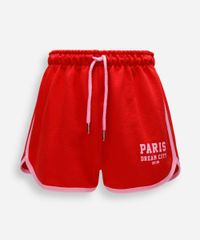 short juvenil de moletinho estampado vermelho