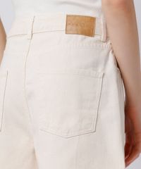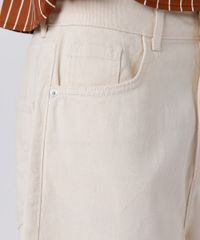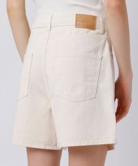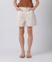 Short feminino confeccionada em sarja estruturada. A peça tem modelagem reta e caimento solto ao corpo. O modelo tem cintura alta, cós com passantes para cinto e fechamento por zíper e botão. Possui três bolsos frontais e dois aplicados na parte posterior.