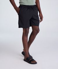 short masculino cós elástico bolso com zíper preto
