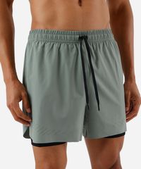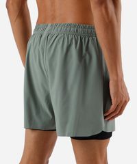 Short masculino confeccionado em tecido com elasticidade e toque leve. A peça esportiva que proporciona um maior conforto durante os seus movimentos possui modelagem reta com caimento levemente solto, ajustado na parte interna por conter forro de compressão, cintura média, cós com elástico embutido e cordão para ajuste com ponteiras em metal, detalhes de pequeno recorte na lateral, dois bolsos internos, acabamentos em pesponto e corte à laser.